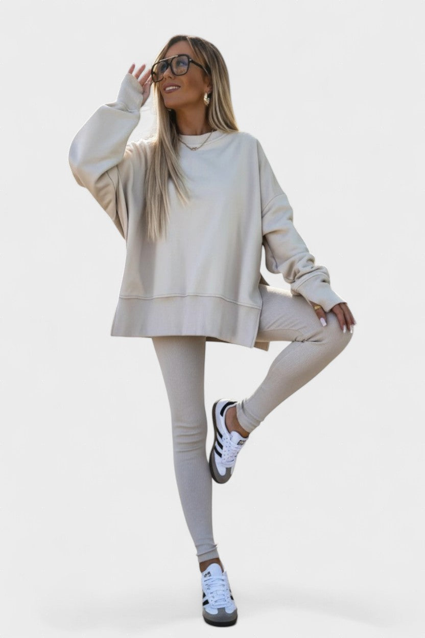 Slap af med stil med Liv™, et sæt med lange ærmer designet til dem, der værdsætter både afslapning og elegant design. Dette alsidige sæt kombinerer hyggelig komfort med en uformelt sofistikeret stil, hvilket gør det til det ideelle valg til uformelle udflugter og afslappede dage derhjemme.