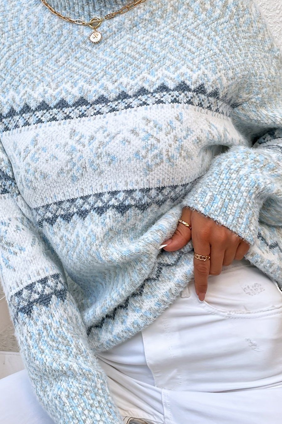Ruby | Collegetrøje fra Thea udstråler vinterlig raffinement gennem håndværk i en fin, blød struktur og et diskret snefnugsmønster i kølige pasteller. Inspireret af klassiske alpegensere er Ruby skabt til den moderne kvinde med let tekstur, elegant fald og en rundstrik, der sidder skarpt uden at stramme. Begrænset produktion bevarer eksklusivitet og giver hvert køb en tidsløs, samleragtig værdi. Den lette vævning føles eksklusiv mod huden, og den slanke silhuet tilføjer en subtil, sofistikeret elegance. Ruby fungerer som et alsidigt stykke til lag-på-lag i frostvejr og til pæne bukser for en mere afslappet arbejdsdag, hvor komfort møder stil.