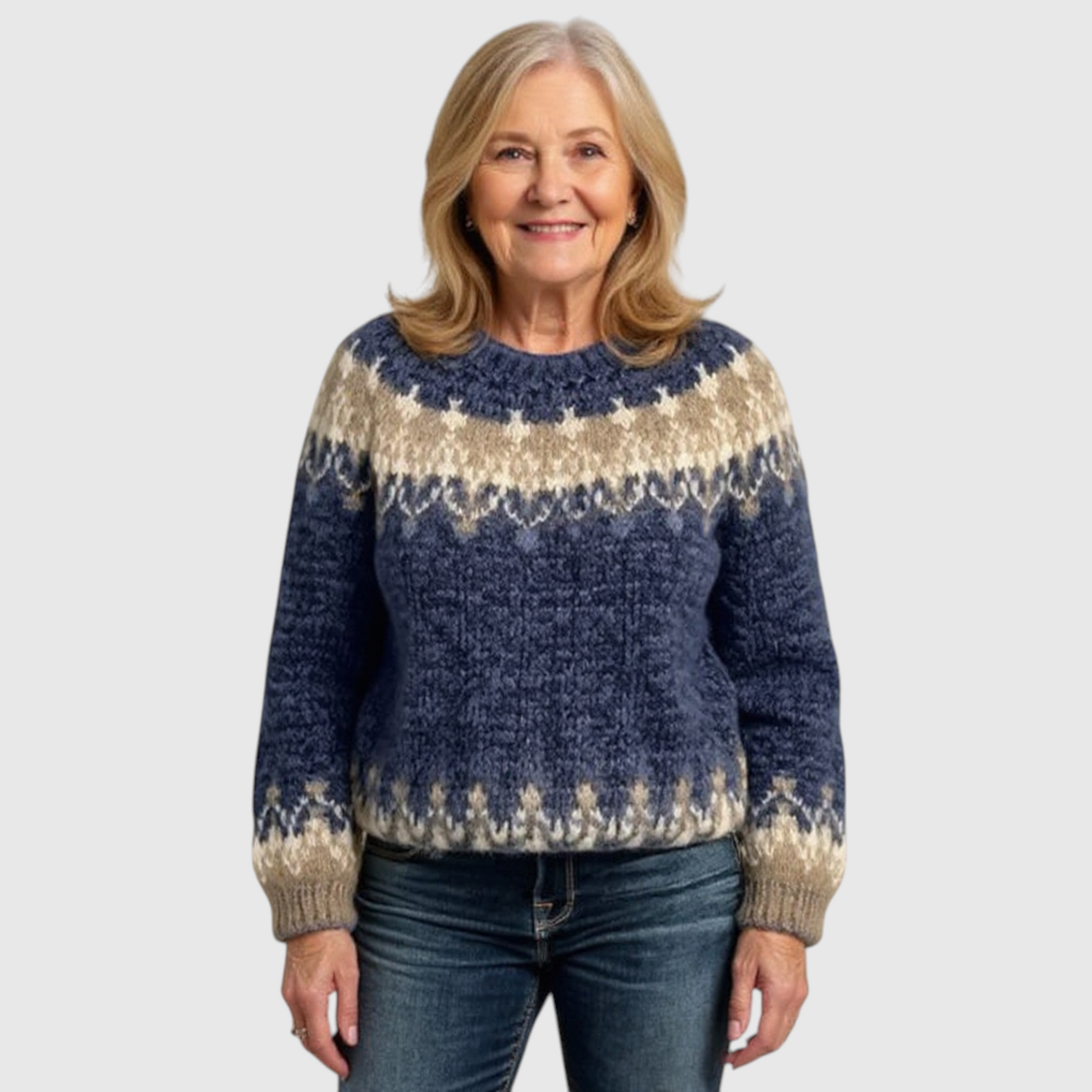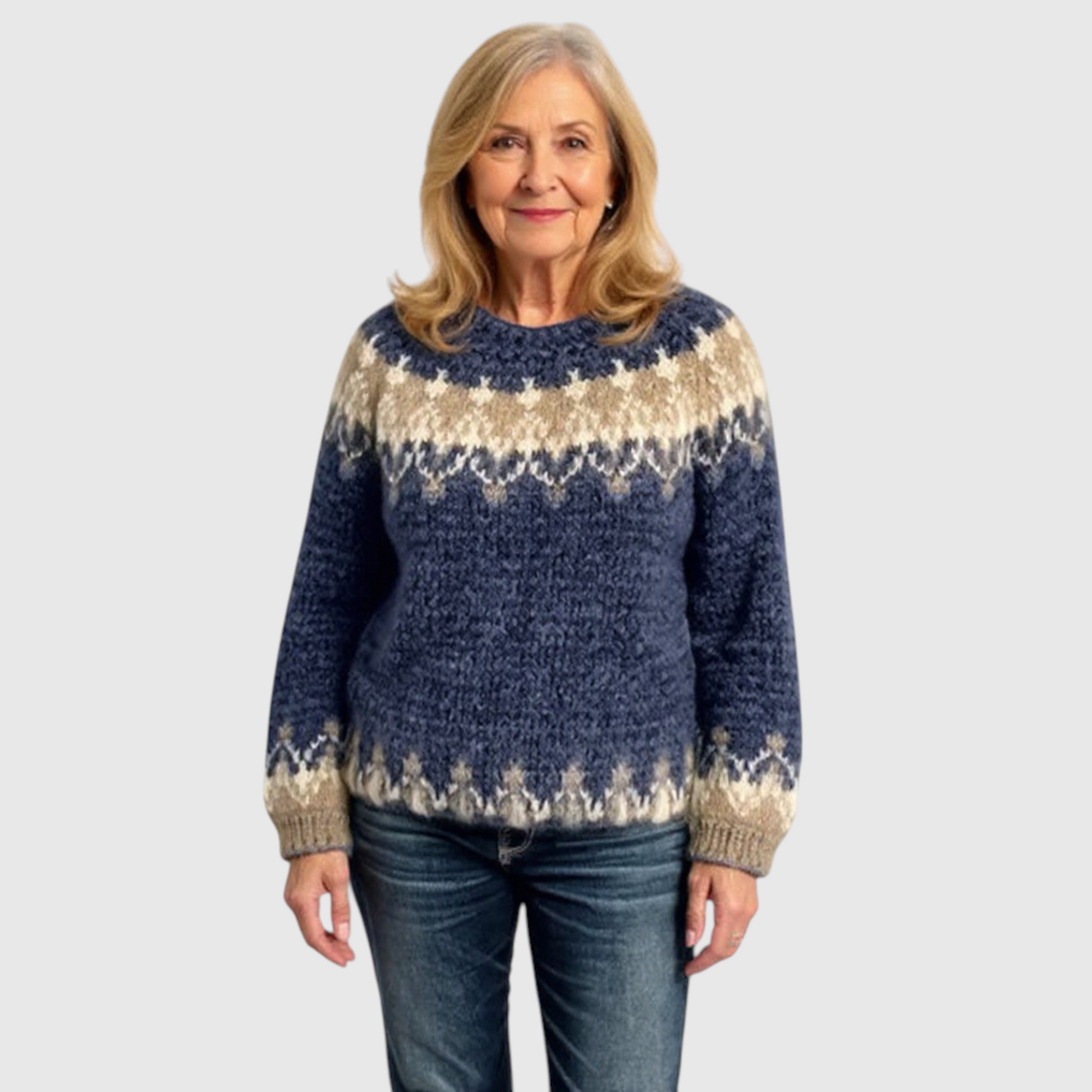 Så mød Samantha - Vintage islandsk uldtrøje. Håndlavet med omhu i Tjekkiet (Bøhmen), er hver søm en lille historie. Trøjen byder på levende mønstre, bløde og hudvenlige garner og en komfortabel pasform, der flatterer hele dagen. Uldblandingen giver varme uden at virke tung, åndbar nok til at følge mig fra morgenmøde til eftermiddagshygge. Det er tidløst håndværk og Boheme-æstetik, der skiller sig ud.